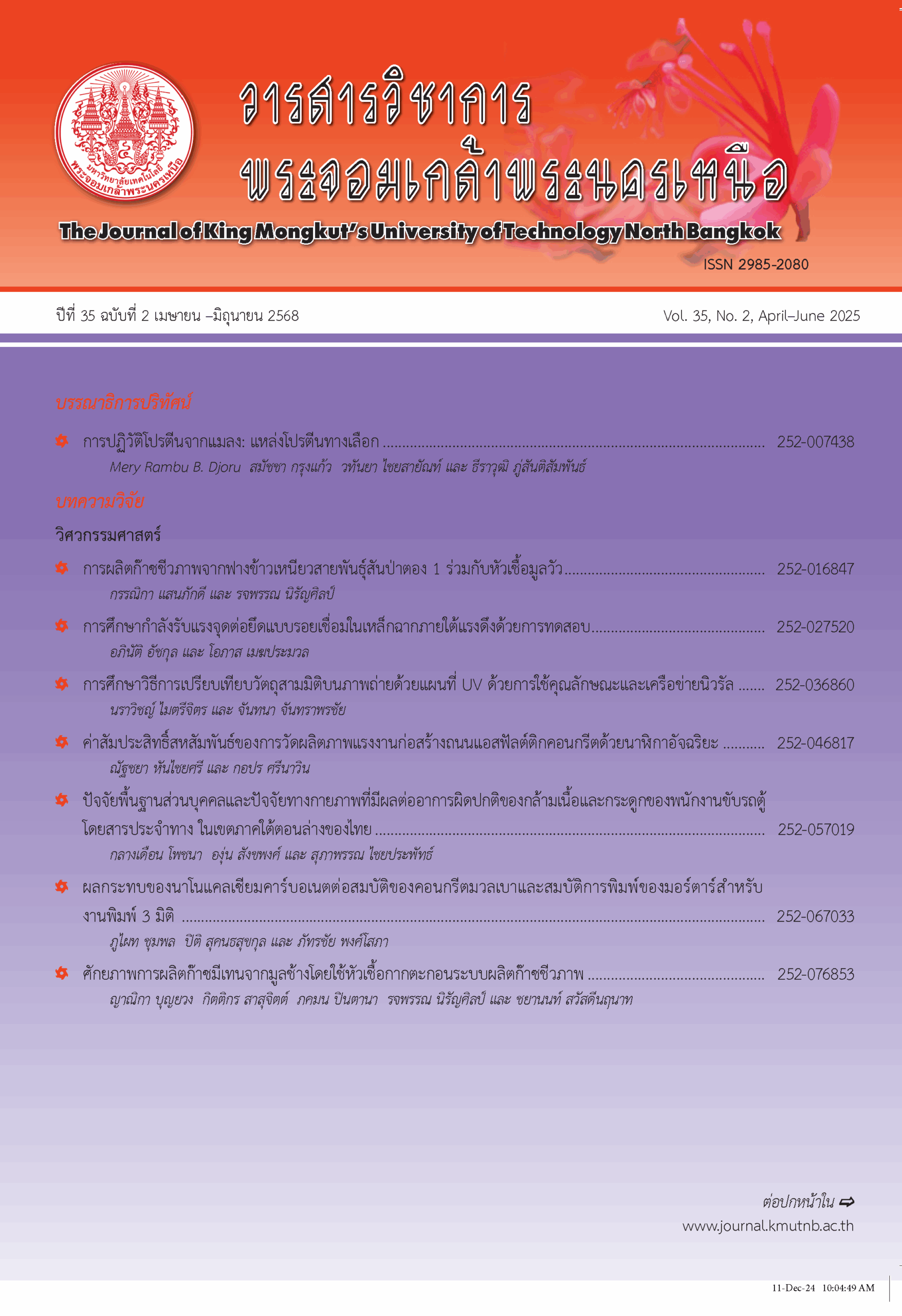 วารสารวิชาการพระจอมเกล้าพระนครเหนือ ปีที่ 35 ฉบับที่ 2 (เมษายน-มิถุนายน 2568) ตุลาคม 2, 2025ตุลาคม 2, 2025ผู้ดูแลระบบE-JOURNALS, วารสารวิชาการ, เทคโนโลยีวารสารวิชาการ เมษายน-มิถุนายน, 2568 ปีที่ 35 ฉบับที่ 2 (2025) ผู้ดูแลระบบ