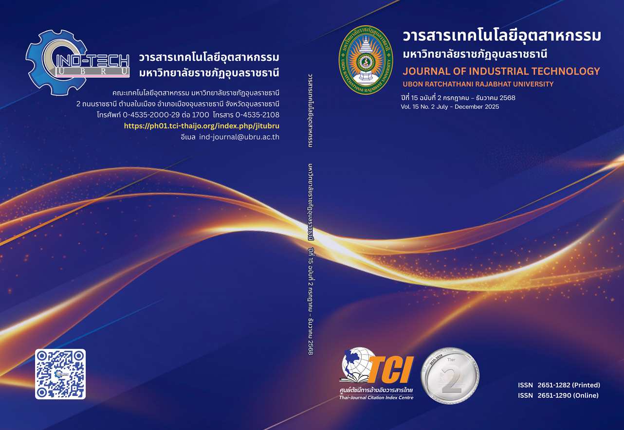 วารสารเทคโนโลยีอุตสาหกรรม มหาวิทยาลัยราชภัฏอุบลราชธานี ปีที่ 15 ฉบับที่ 2 (กรกฎาคม – ธันวาคม 2568) มกราคม 12, 2026มกราคม 12, 2026ผู้ดูแลระบบE-JOURNALS, วารสารวิชาการ, เทคโนโลยีวารสารวิชาการ กรกฎาคม – ธันวาคม 2568 ปีที่ 15 ฉบับที่ 2 (2025) ผู้ดูแลระบบ